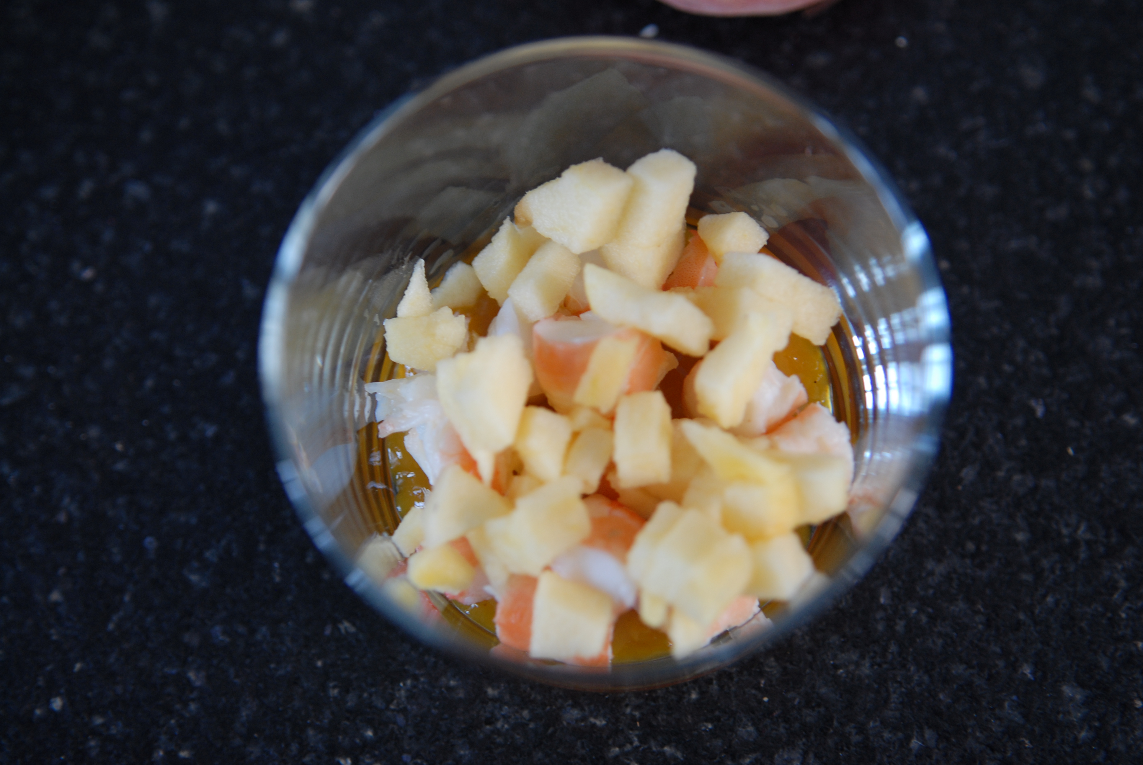 Déposer une cuillère de chutney au fond des verrines.