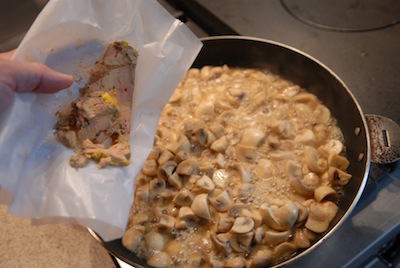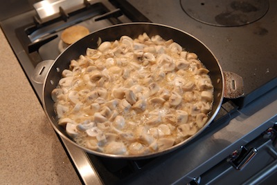 Avant que l’eau des champignons ne soit totalement évaporée ajouter le foie gras, bien mélanger pour lier la sauce (vous pouvez ajouter une cuillère à café de maïzena)