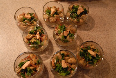 Remplir des petits ramequins des champignons confits au foie gras très légèrement tièdes
